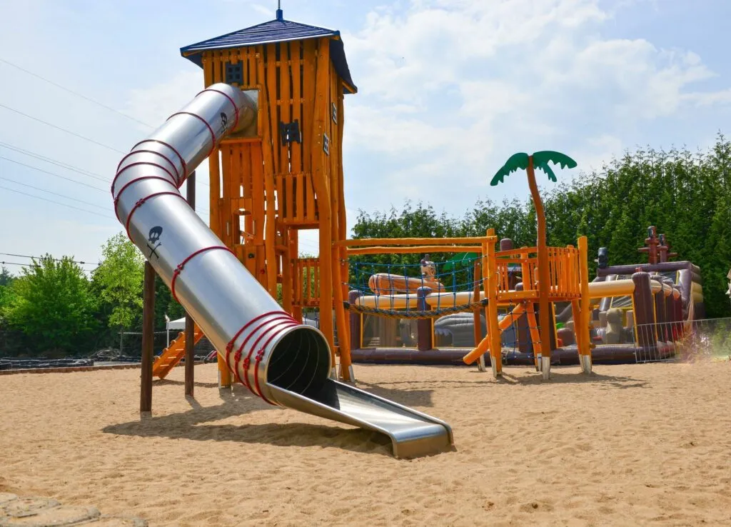 Im Freizeitpark Außenbereich erwarten euch u.a. die Familien-Fahrgeschäfte Ikarus und Niagara, Bumper Cars, Streichelzoo, Ninja Area (Hochseilgarten), Bungee-Trampoline, Elektro-Kartbahn, Go-Kartbahnen für große und kleine, die Welle Airtrampolin, die Piratenbucht mit Motorbooten, Hüpfburgen, Wasserspielplatz sowie viele weitere Spiel- und Kletterangebote.