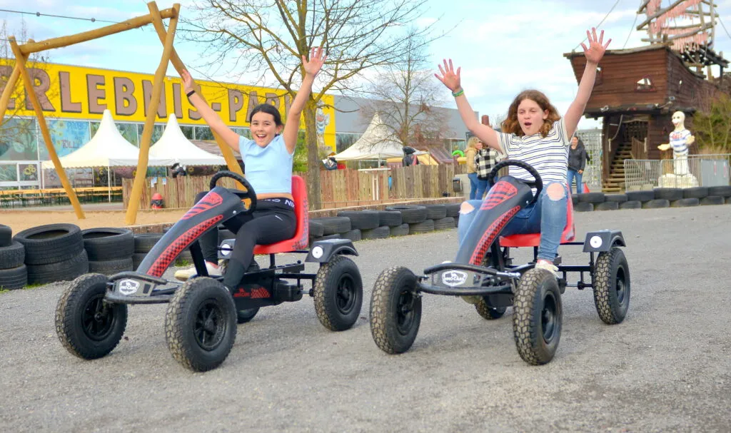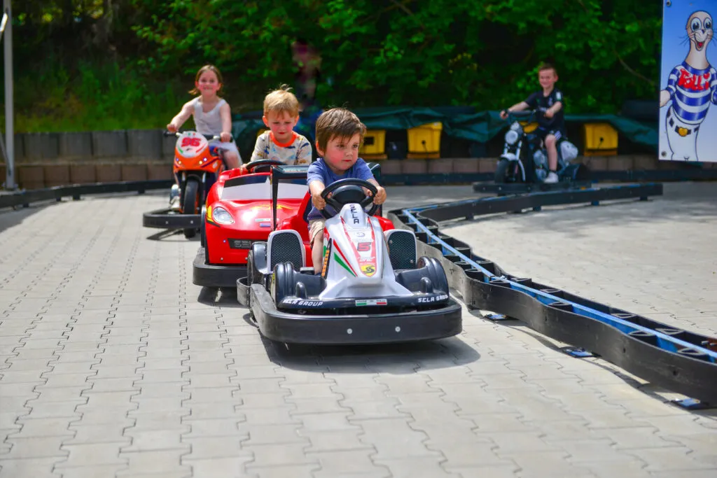 Mit Freunden um die Wette flitzen auf unseren coolen Elektro-Karts. Die kurvenreiche Strecke macht viel Spaß und sorgt für spannende Rennen