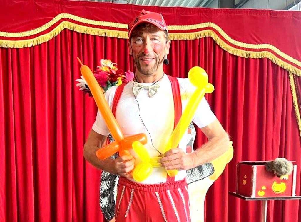 Jonglage, Zauberei, Drahtseilartistik und vieles mehr – Clown Olli hat immer eine neue Überraschung auf Lager.