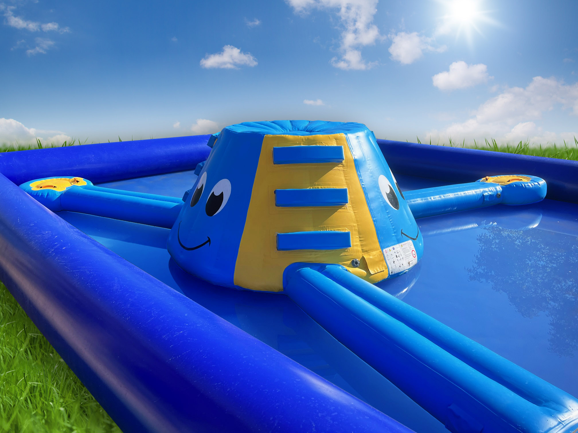 In dem XL-Wasserbecken ist Platz zum Relaxen und Planschen für all Deine Gäste. Für Action sorgen dabei die zwei Zusatzmodule, aus denen gewählt werden kann: Die Riesenkrake verwandelt den Pool in einen spritzigen Abenteuer-Parcours zum Blancieren und Klettern. Oder Ihr entscheidet Euch für die zwei freundlichen Haie, die mit einer tollen Wasserrutsche übers Wasser treiben.